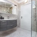Los cuartos de baño también disponen de una ducha y una lavadora.